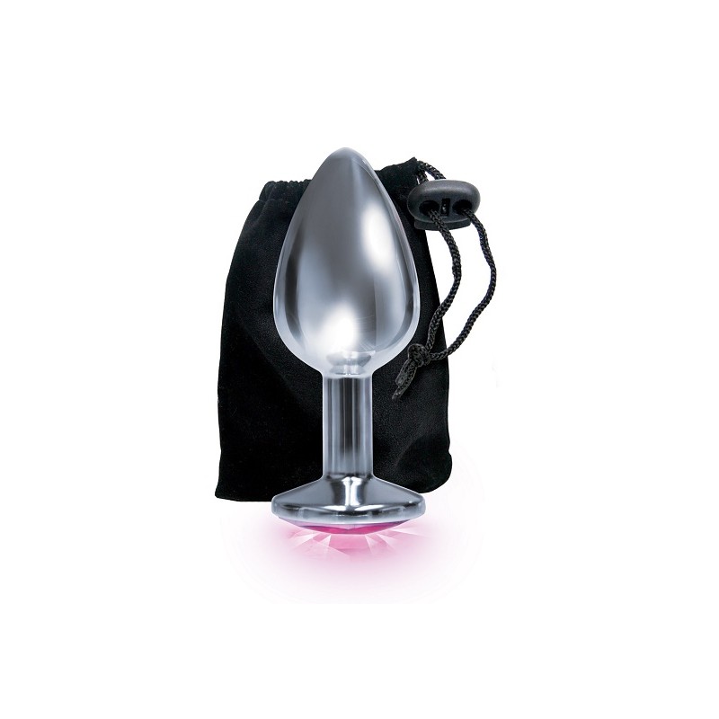 Tapón anal de Metal tamaño Mediano con diamante viene sellado dentro de una bolsa que incluye una bolsa de terciopelo en negro