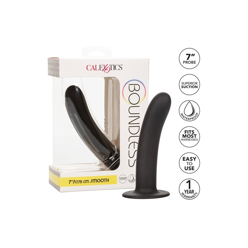 La sonda suave Boundless™ de 7” seguramente te llevará al mundo orgásmico de una estimulación interna extra profunda. El eje perfectamente angulado, el diseño extralargo y la fuerte base de ventosa le permiten ofrecer una estimulación precisa con cada embestida. La sonda acentuada y el eje rígido están creados para provocar perfectamente las curvas íntimas y complacer los puntos dulces internos.