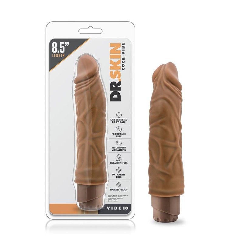 Dr. Skin Cock Vibe 10 es un consolador vibrante suave y realista con un eje de textura venosa que te masajea eróticamente mientras lo empujas dentro de ti. Las poderosas vibraciones palpitantes se controlan mediante una conveniente base giratoria. Es resistente al agua para la ducha y el baño. Vibe # 10 hecho de PVC sin ftalatos seguro para el cuerpo. Para limpiar, use agua y jabón o un limpiador de juguetes y luego deje secar al aire.